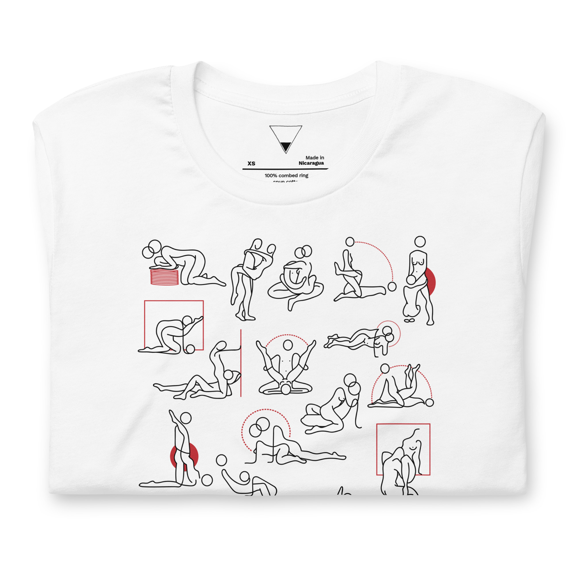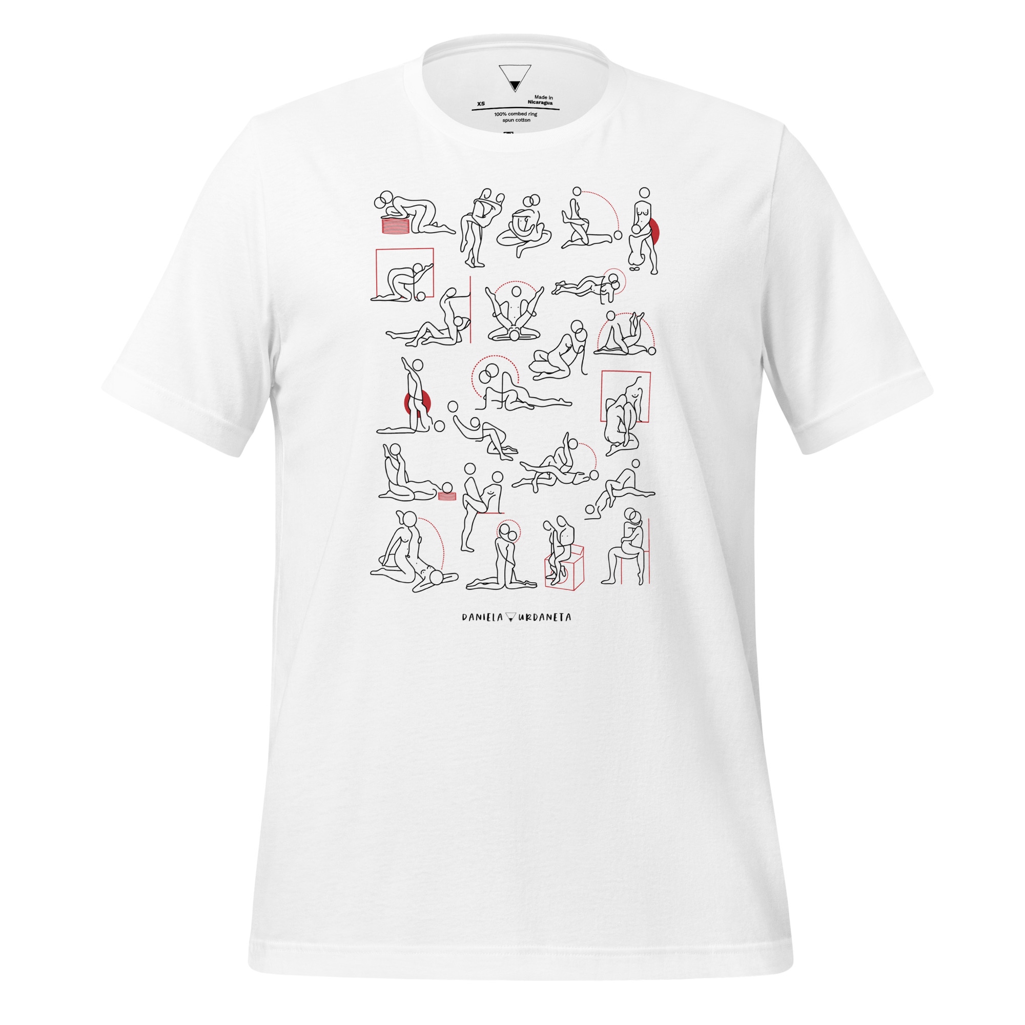 Premium white cotton t-shirt with a curated collage of popular Kamasutra Cute positions. Fun, intimate, and effortlessly wearable.